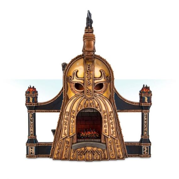 Мгновенно сформированный из расплавленного металла, Магический боевой горн является отражением божественной силы, проявлением ярости Гримнира, сплавленной с раскаленным добела пламенем Вулкатрисы. Эту мистическую печь можно вызвать на поле боя, где ее элементарный жар может воспламенить руны ур-золота и украсть силы Жарргримов.