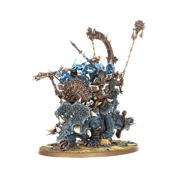Стегадоны - неповоротливые стадные существа, выведенные Серафонами в качестве вьючных животных. Когда отряд сцинков отправляет их на войну, атакующий стегадон превращается в живой таран. Его сокрушительная масса и заостренные рога способны отбросить в сторону даже самых решительных защитников, в то время как его всадники-сцинки осыпают тех, кто находится внизу, дротиками и магическим оружием.