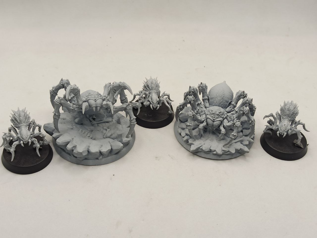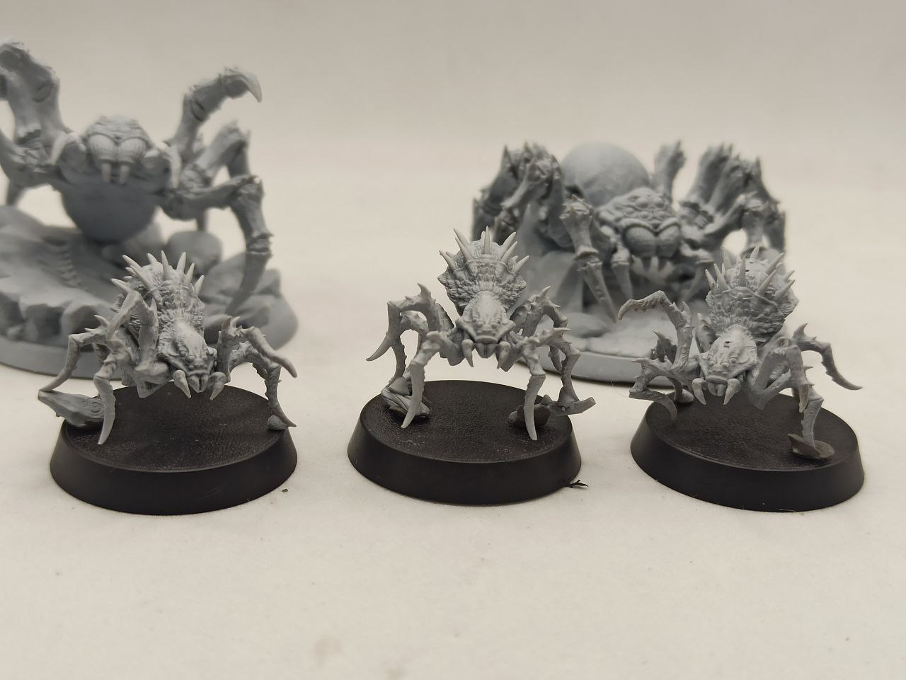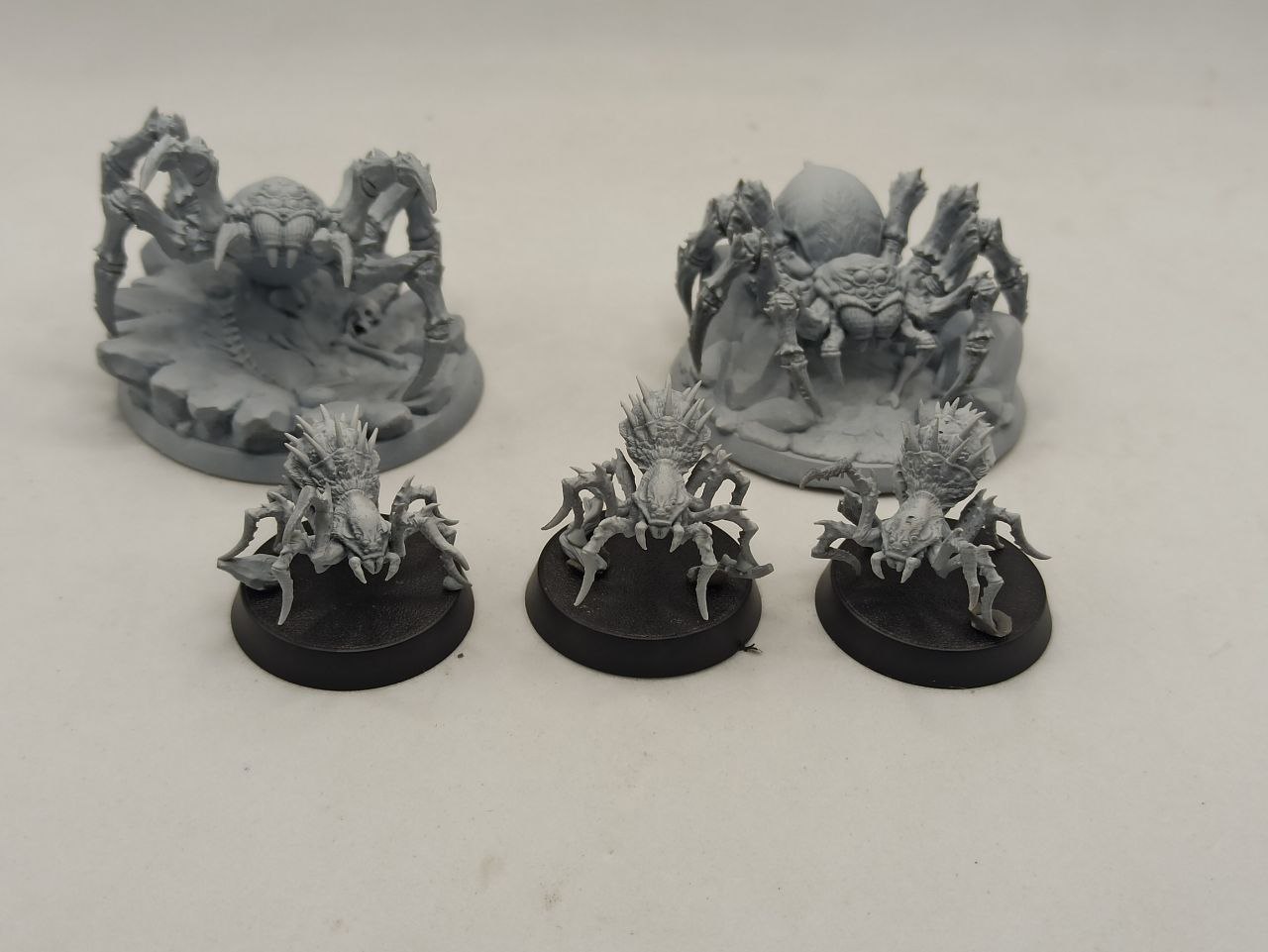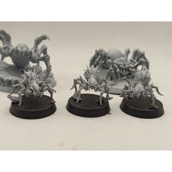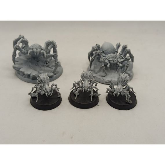 Цена за 5 миниатюр и 2 текстурные базы под больших пауков .На фото большие пауки стоят на 50 базе ,маленькие на 28 базах.