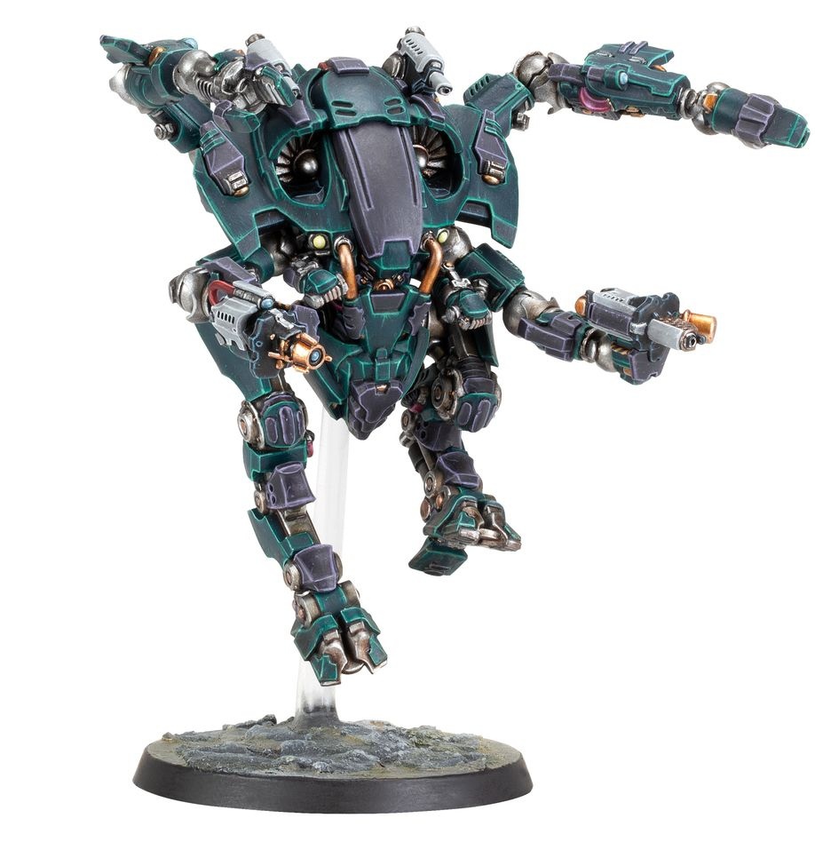 Из этого составного пластикового набора можно собрать две арахни-буровые установки Van Saar Ash Wastes, запредельные варианты арахни-буровой установки, которые могут быть добавлены к любой бригаде Van Saar. Эти мобильные экзоскелеты сильно бронированы и оснащены мощными ускорителями прыжка. На корпусе каждого из них установлены спаренные тяжелые лазерные карабины, пара механических серворук и два оружия на выбор - плазменная пушка или огнемет, рад-пушка или гарпунная установка.