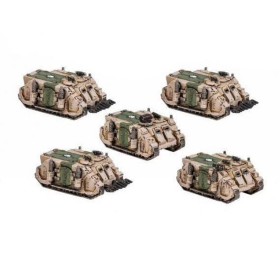 Из этого составного пластикового набора можно собрать 10 легендарных «Rhino» Legiones Astartes - прочных транспортных средств, которые перевозят пехоту Космического Десанта по полям сражений Legions Imperialis. В стандартную комплектацию каждого из них входят сдвоенные болтеры, установленные на цапфе, а в комплект входят две пусковые установки «havoc», установленные на цапфе, и четыре мульти-мельты для обеспечения большей огневой поддержки. Вы также найдете косметические варианты сборки, которые помогут персонализировать вашу технику, включая бульдозерные отвалы, ракеты hunter-killer, а также разделенные или спаренные сдвоенные болтеры.