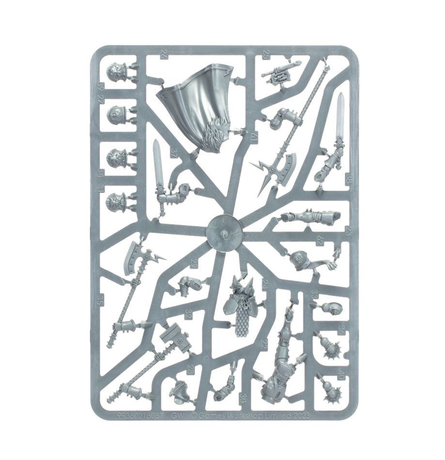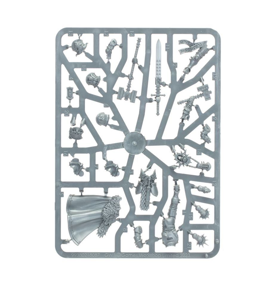 6 элитных вечных штурмовиков, каждый из которых - странствующий герой, сведенный вместе судьбой. Эти составные пластиковые миниатюры включают в себя 6 странствующих квесторов, вооруженных разнообразным оружием - две модели в этом универсальном наборе поочередно могут быть построены как простые квесторы, а две поочередно могут быть построены как рыцари–реликторы