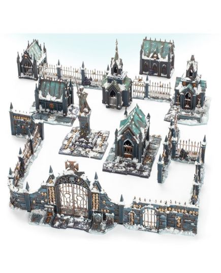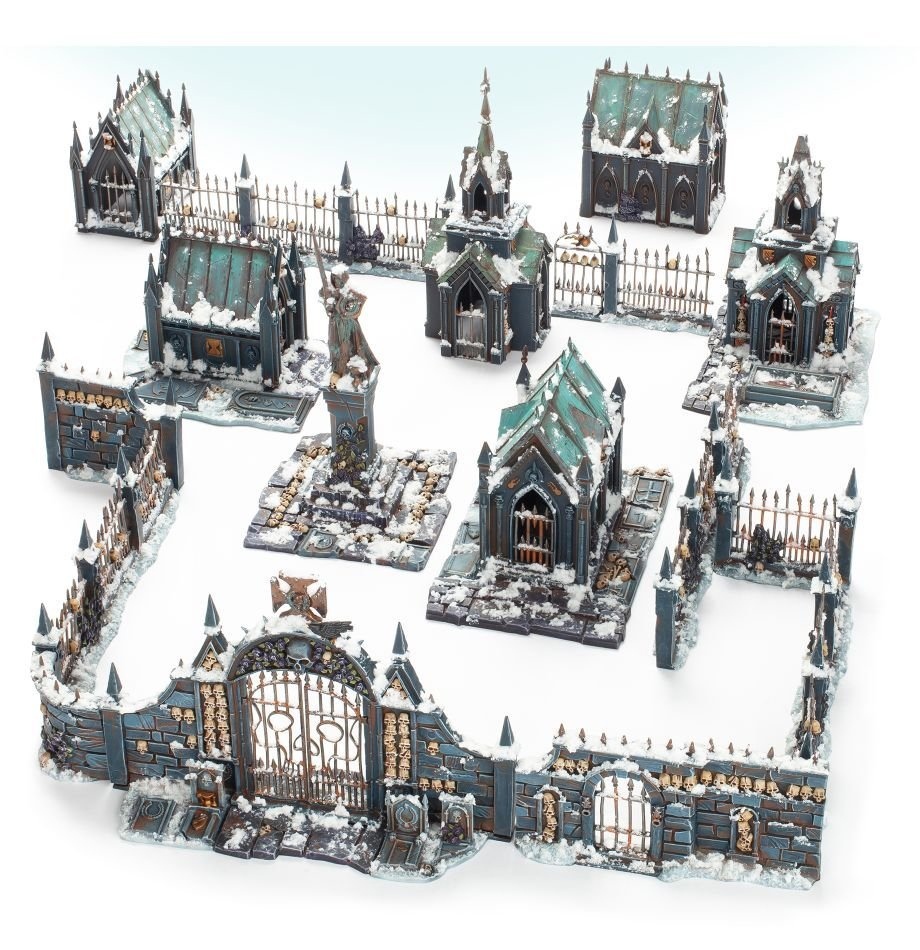 Наборы Ravaged Lands предназначены для расширения вашего основного опыта в Warcry за счет новых заданий и тематической местности. Этот набор содержит огромное количество пластиковых декораций на кладбищенскую тематику, включая мавзолеи, надгробные знаки и ограды.