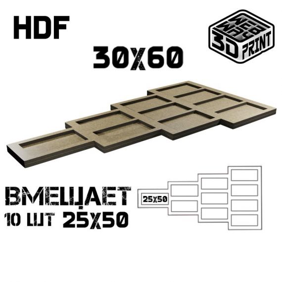 Данный трей вмещает 10шт подставок 25х50мм, которые отображают 30х60мм