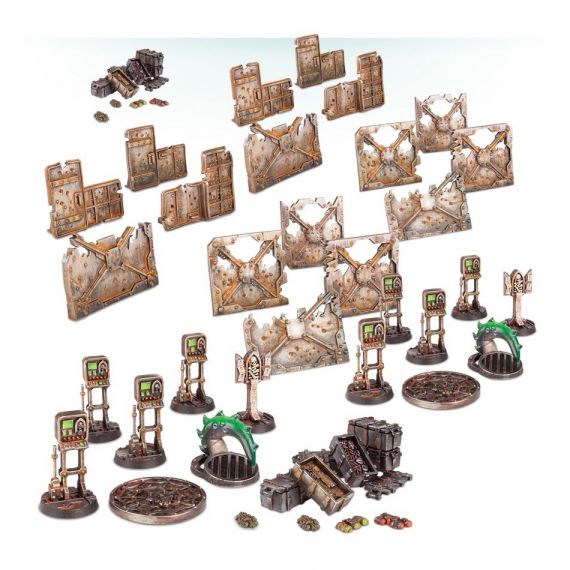 Расширьте ваши игры Necromunda Underhive и Gang War с помощью этого набора пластиковых баррикад и целей.