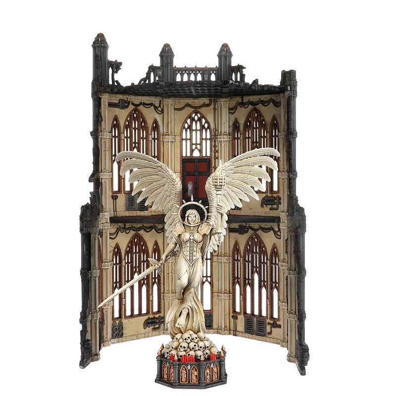 В этом наборе содержится 6 компонентов ландшафта, с помощью которых вы сможете создать 2 элемента террейна, совместимых с любыми фрагментами Сектора Империалис (Sector Imperialis). Первый элемент представляет собой фрагмент восьмиугольного здания высотой 30,5 см. Второй – 20-сантиметровая статуя Святой Целестины (Saint Celestine) с мечом в правой руке и факелом в левой. Вы можете даже совместить несколько таких наборов, чтобы построить внушительную 50-сантиметровую башню, венчающуюся этой статуей.