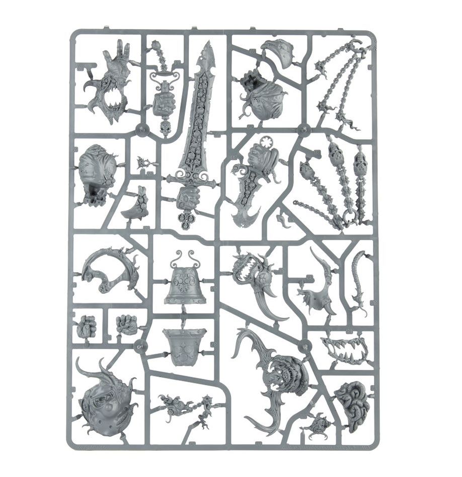 Среди великих демонов Нургла есть один, который путешествует дальше, чем кто-либо другой. Куда бы он ни отправился, отвратительная жизнь волнами распространяется вокруг него. Его зовут Ротигус, он Великодушен и любит свою работу. Флора и фауна в его присутствии расцветают и изгибаются с гротескной плодовитостью – его дар таков, что он не чувствует необходимости носить оружие, вместо этого у него есть узловатый жезл, который постоянно гниет и регенерирует из семени, вызывая все более ужасные болезни. Он воплощает Потоп Нургла – гнилую, болезнетворную бурю, которая вечно нависает над его гористой фигурой, мерзкий ливень, несущий благословение Нургла в каждый отдаленный уголок поля боя.
