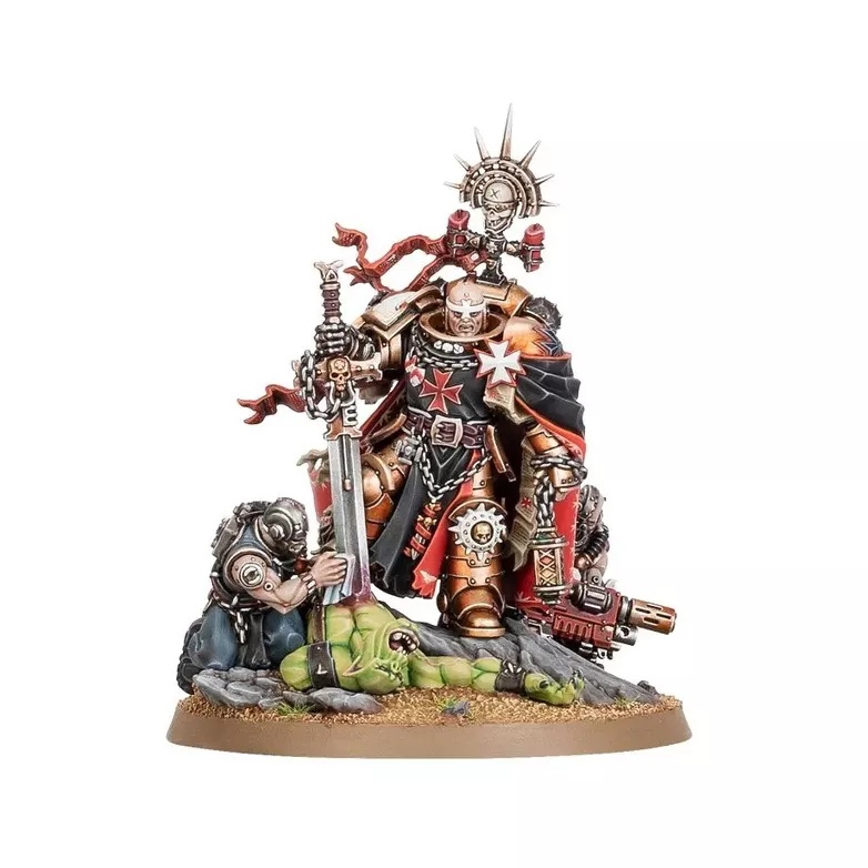 Высший Маршал Хелбрехт (High Marshal Helbrecht) обладает свитой из двух рабов, одному из которых дарована честь нести его комби-мельту, Свирепость, а другому – начищать до блеска его клинок. Храмовники вокруг Хелбрехта преисполняются в своей вере, набрасываясь на врагов с особой яростью. В качестве альтернативы вы можете разместить у его ног голову поверженного Орка (Ork) и выбрать одну из трёх различных голов (две из них без шлемов).