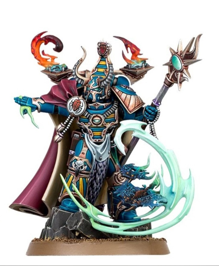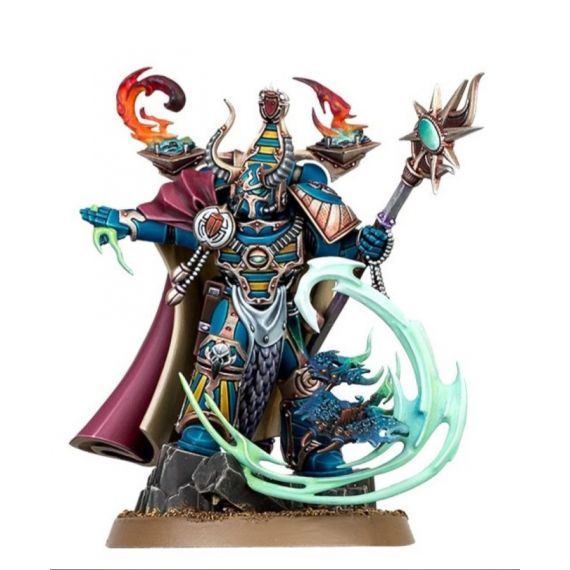 The Infernal Master empowers your Thousand Sons force through a variety of potent Infernal Pacts, enhancing allies and debilitating foes with the trickery and insight of his daemonic familiars. A psyker himself, the Infernal Master can also wield powerful sorcery and challenge enemies leaders to combat with his coruscating force stave.