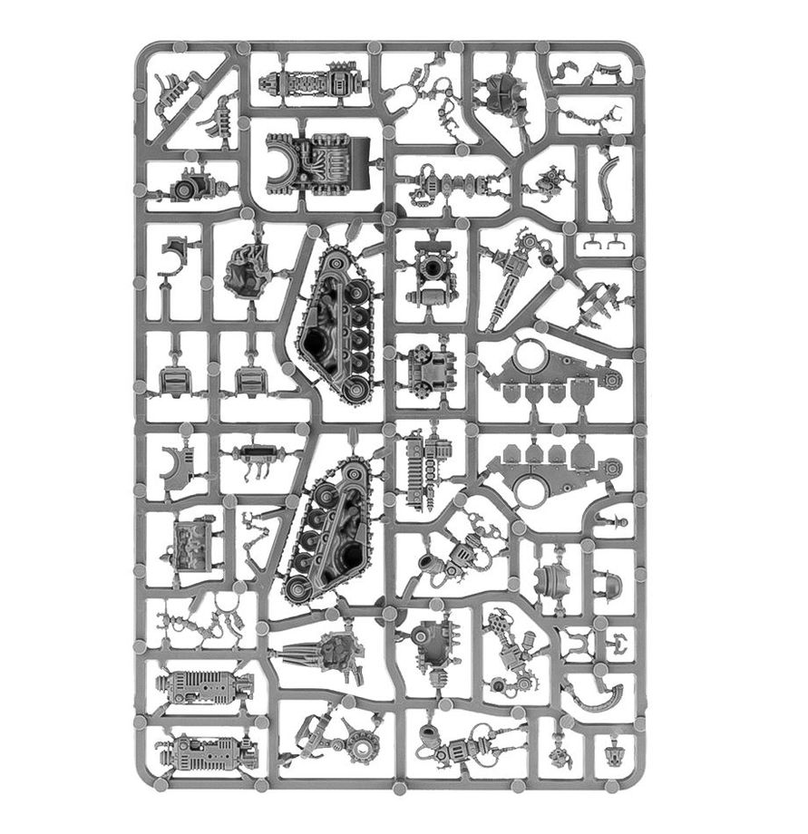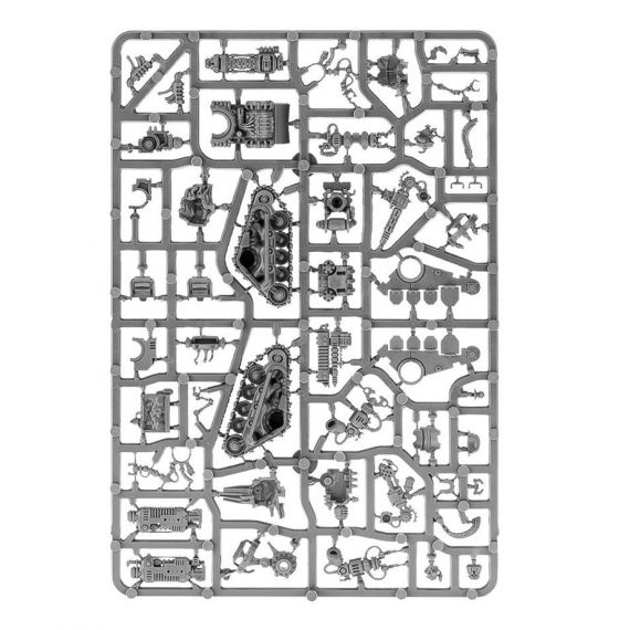 Этот набор боевых сервиторов содержит различные варианты голов, основных узлов, и навесной брони для двух видов Катафронов. А также три разных выхлопных трубы и невероятное количество вооружения: тяжёлые дуговые винтовки, торсионные пушки, гидравлические когти, плазменные кульверины, тяжёлые гравипушки, дуговые когти, фосфорные бластеры