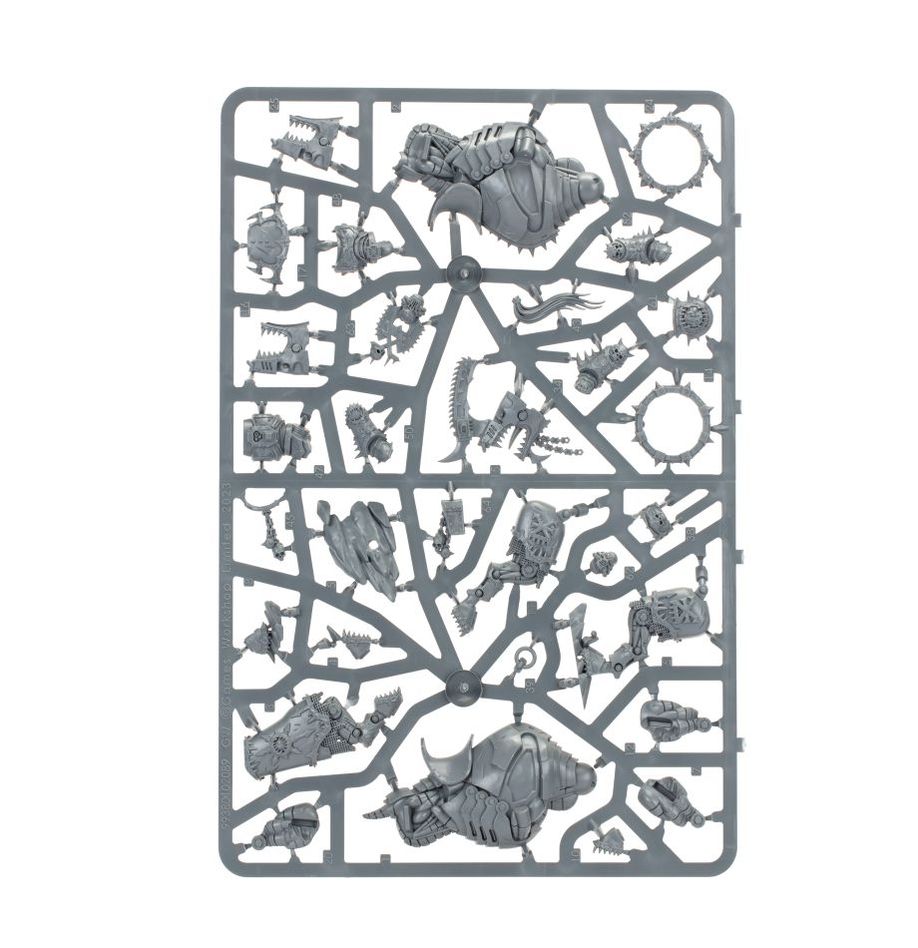 Этот составной пластиковый набор создает повелителя Пожирателей миров на Джаггернауте – смертоносном убийце, восседающем на демоне с медной кожей. Этот могучий воин облачен в доспехи, украшенные символами Кхорна, с двумя различными наплечниками на выбор для каждой руки, и может быть оснащен одной из двух голов – богато украшенным шлемом с гребнем или непокрытой головой, на которой надет рычащий респиратор. Лорд владеет возвышенным цепным клинком в форме либо порочного цепного меча, либо цепной секиры с длинной рукоятью, а также вооружен плазменным пистолетом - его можно изобразить целящимся из пистолета в своих врагов или цепляющимся за одно из колец своего скакуна. Его конь–джаггернаут покрыт биомеханическими деталями, а также предлагает два различных варианта головы - один с гладким гребнем с лезвиями, другой с зазубренным рогом.