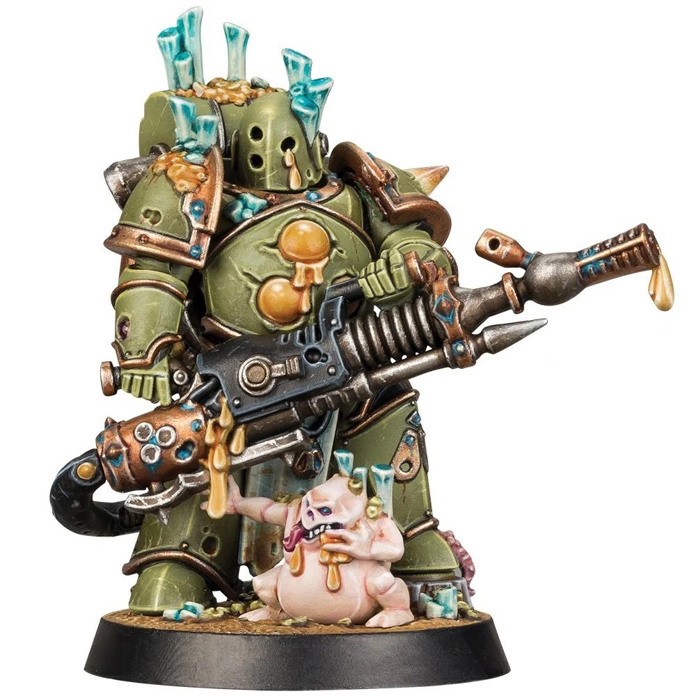 В комплектацию миниатюры входят детали для сборки как с шлемом, так и без него, а также модель Нурглинга (Nurgling), уникальная для каждого бойца.