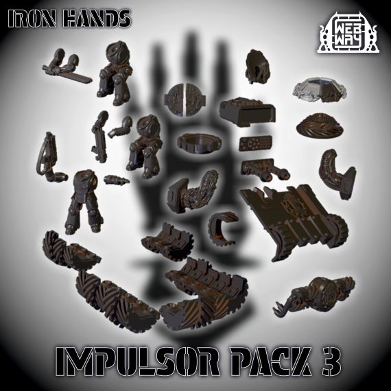 Позиция состоит из Primaris Impulsor и апгрейда нашего дизайна Primaris Impulsor - Iron Hands - Upgrade Pack 3 - WebWay.