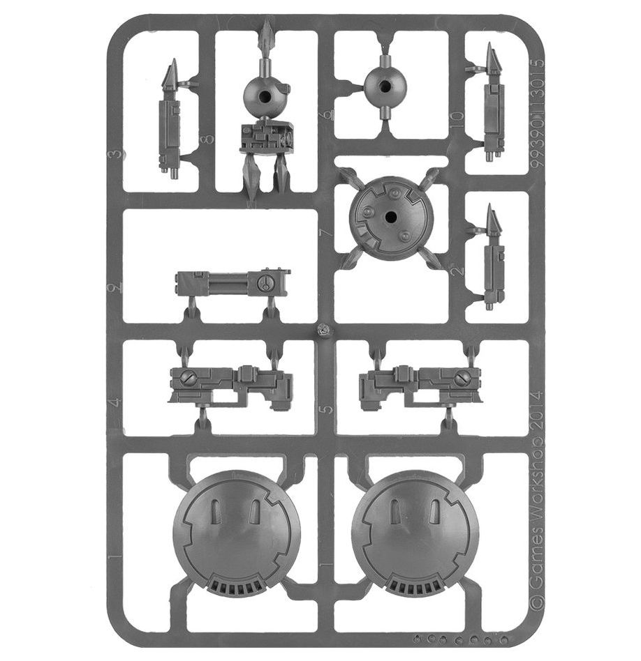Darting through even the most hostile environments with ease, T'au Drones are guided by a networked AI of impressive capabilities. Data flows back and forth constantly between them, advising and distributing information on threats, optimal paths and targets instantaneously, creating a blanket of tactical firepower across entire battlefields. Were these drones merely information-gatherers they would be dangerous enough, but their abilities to create shields, mark targets and destroy enemies make them immensely useful offensive weapons as well as the definition of machine-cunning.