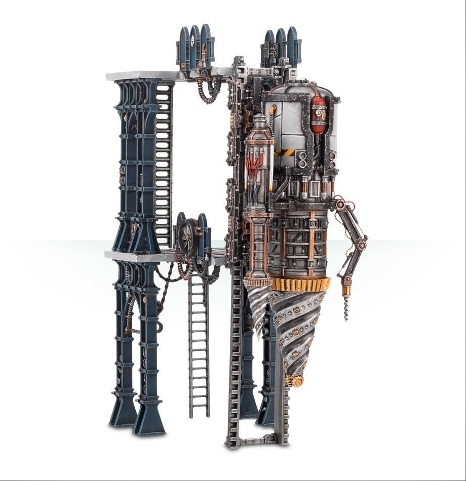 Освоение промышленных миров – достаточно привычное занятие для Культа Генокрадов (Genestealer Cult). Когда приходит время восстать против угнетателей, они пускают в ход всё имеющееся в их арсенале импровизированное промышленное оборудование. Одним из крупнейших и наиболее впечатляющих агрегатов такого рода является Тектоническая буровая установка (Tectonic Fragdrill) – огромный горнодобывающий механизм, который можно нередко встретить в Секторе Механикус (Sector Mechanicus). Эта техника способна вызывать целенаправленные землетрясения.