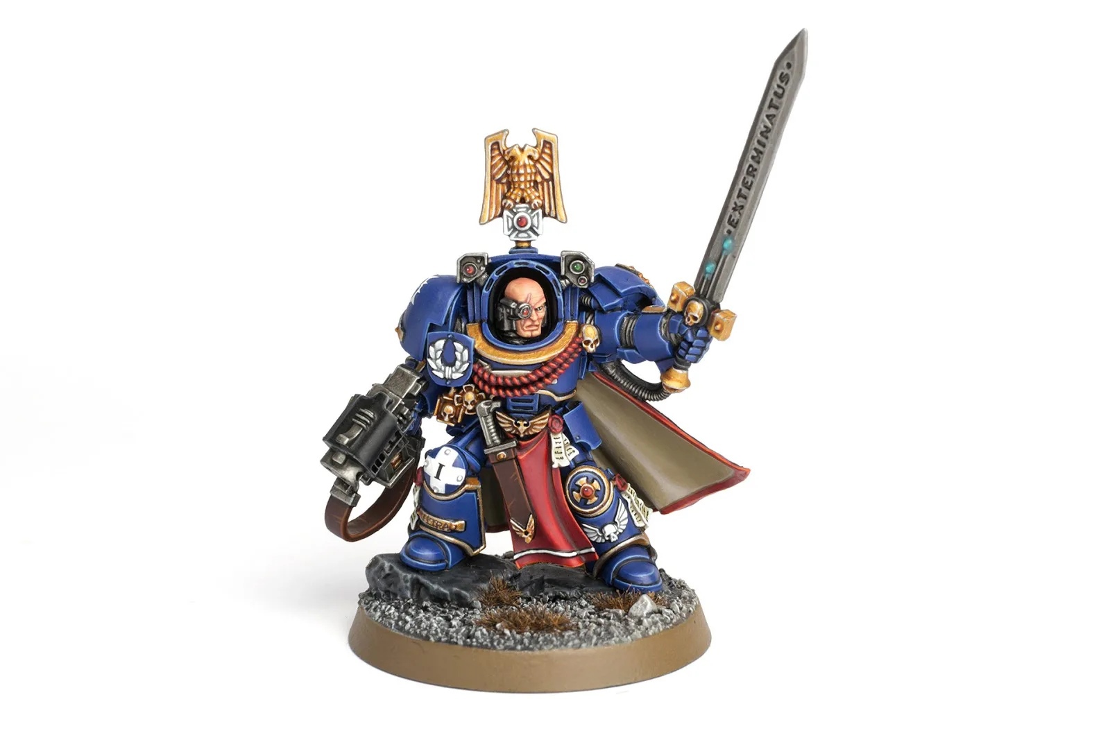 Капитаны космодесанта сражаются спереди, и немногие виды брони позволяют им делать это так же эффективно, как доспехи Терминатора. Этот невероятно прочный костюм защищает капитана от всего, кроме самого разрушительного вражеского огня, и позволяет ему телепортироваться прямо в сердце противника.