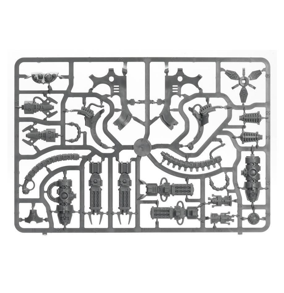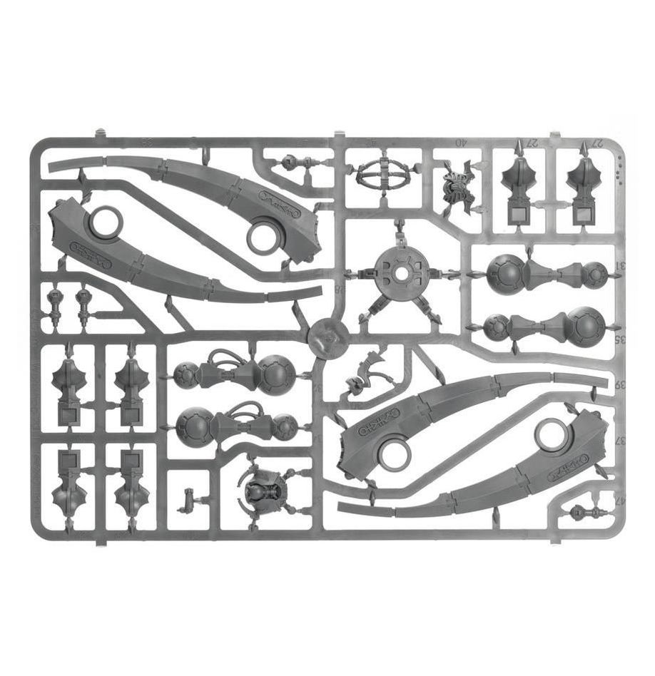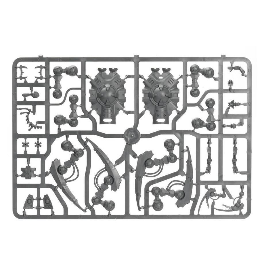 С помощью данного набора вы сможете собрать одну миниатюру Триархического охотника Некронов с опциями вооружения: тепловой излучатель, корпусколярный измельчитель или спаренная тяжёлая гаусс-пушка.